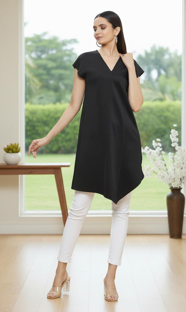 Black Scuba Asymmetric V-neck Tunic